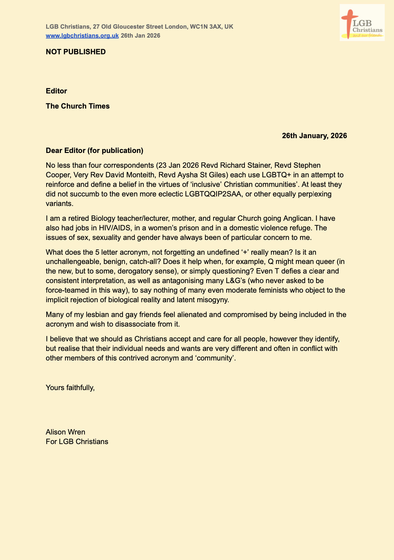 News & Commentary Press Alison Wrenchurch of englandFor Church Times Readersinclusive christianityLetters